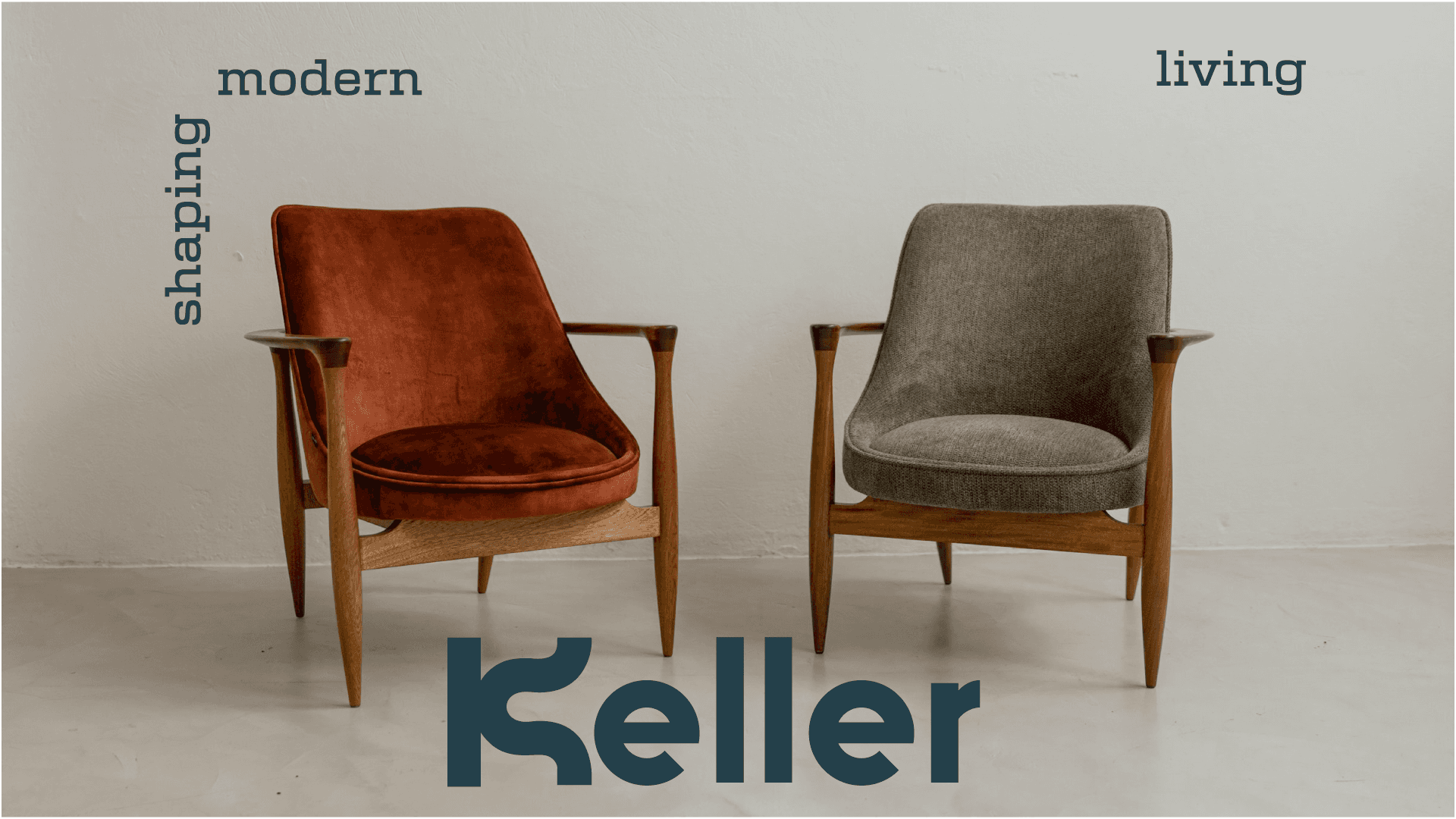 Mostra Nuova was chosen as the primary typeface for its modern structure and subtle elegance, complementing the overall aesthetic while enhancing clarity and legibility. Together, the logo, typography, and colour palette create a cohesive identity that positions Keller as a modern furniture brand grounded in expertise, craftsmanship, and thoughtful design.