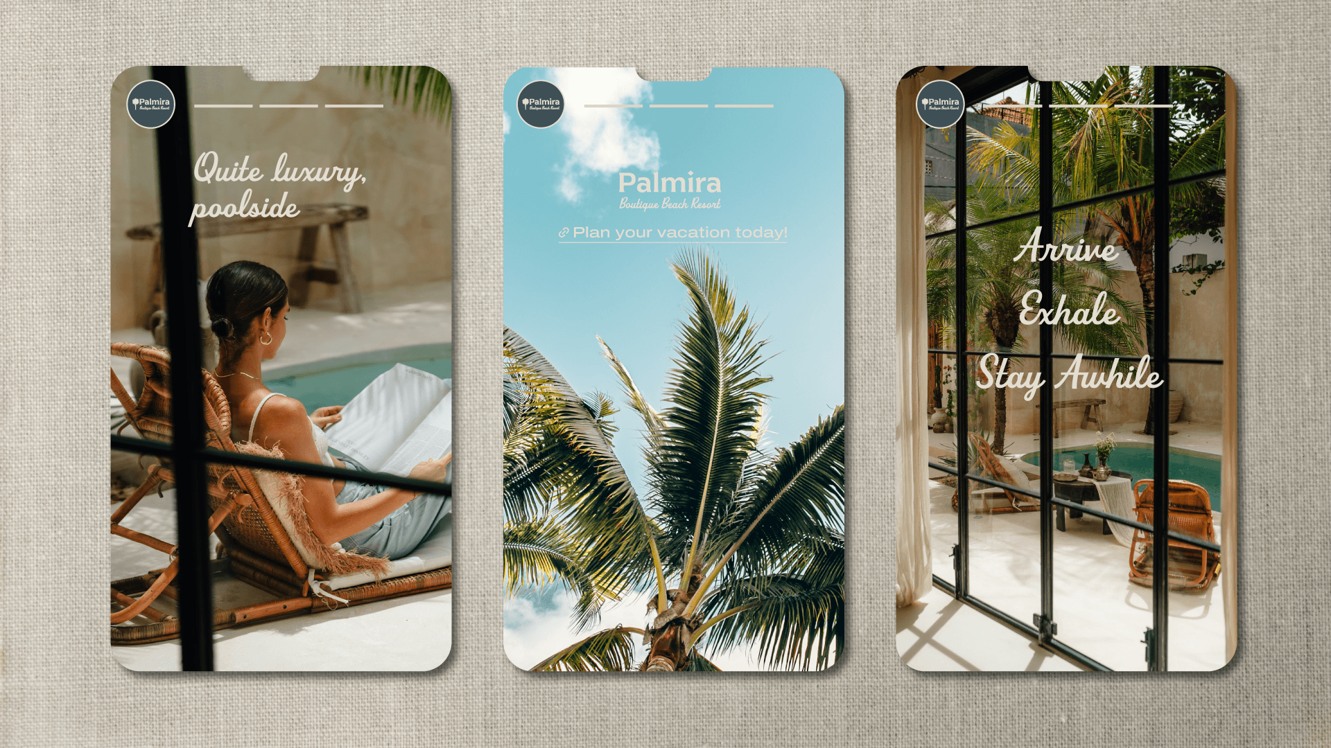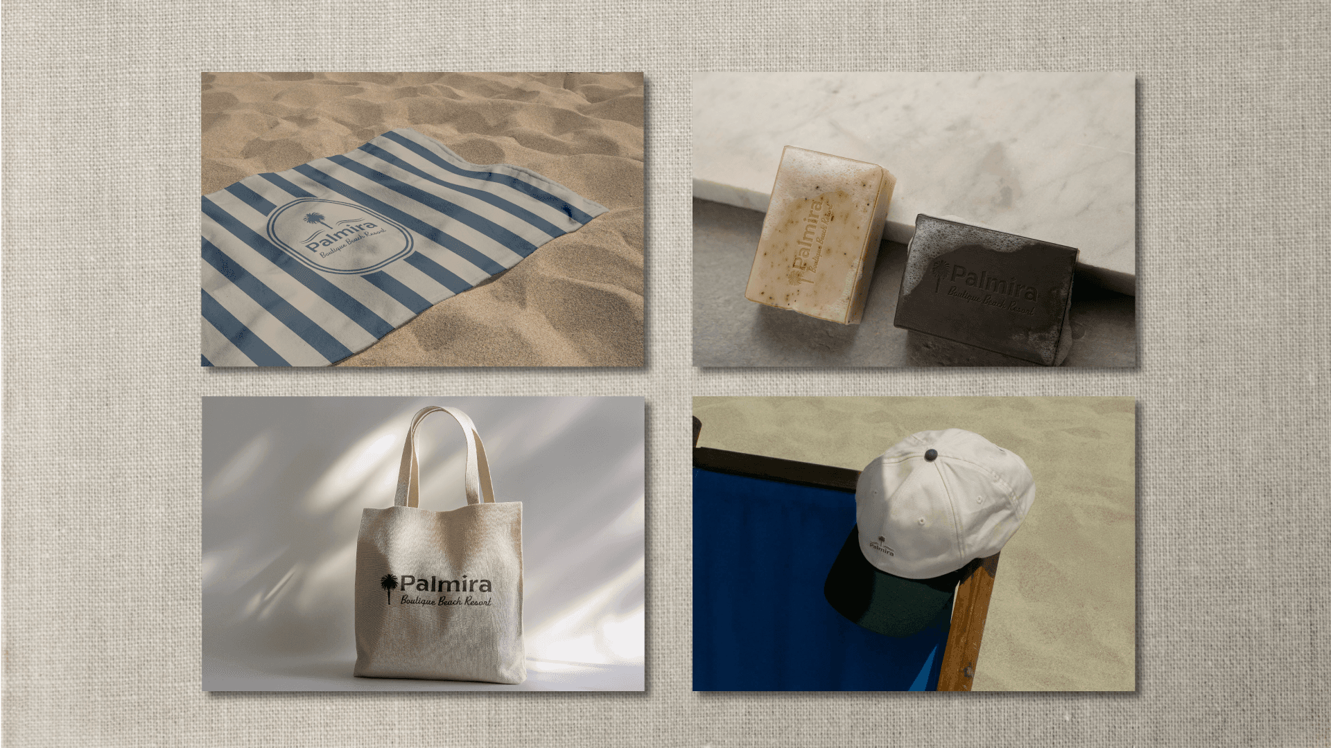 The brand identity created balances luxury with approachability, combining a soft, modern aesthetic with coastal influences. Through a relaxed yet elevated visual tone, the branding creates an inviting atmosphere that reflects Palmira as a serene coastal escape; elevated yet effortless. A strong social media presence was designed, keycards, various hotel items such as towels and soap all convey the modern costal living, the experience Palmira aims to provide guests.