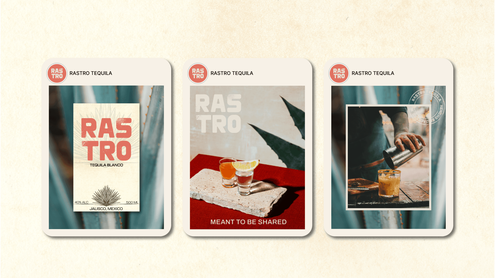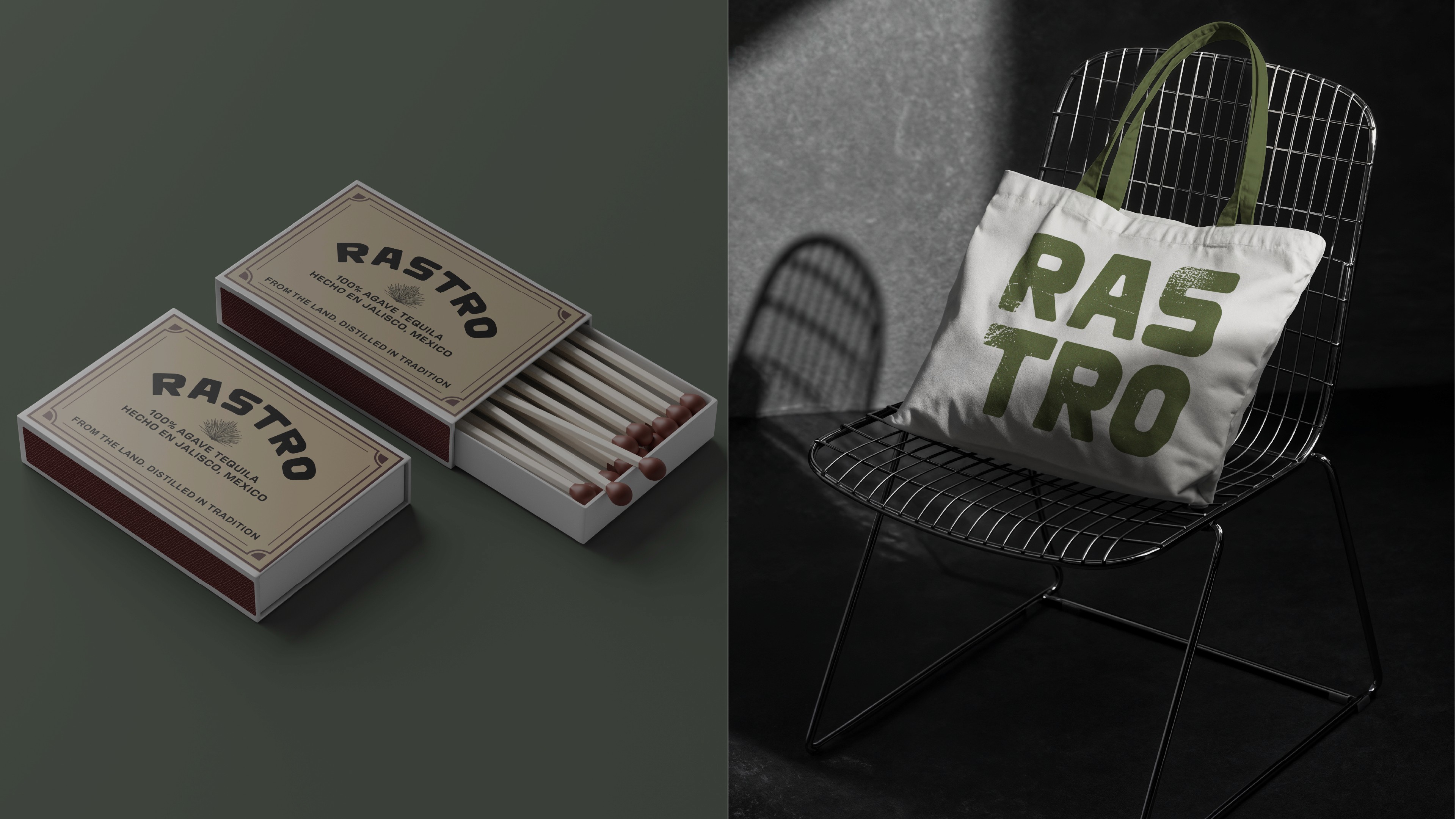 The identity was applied across a range of deliverables, including bottle labels and packaging, billboard and poster advertising, curated Instagram content, and branded merchandise such as matchboxes and tote bags. Together, these elements create a cohesive system that tells the story of Rastro’s journey from agave to spirit, positioning it as a tequila brand defined by craft, quality, and a deep connection to the land.